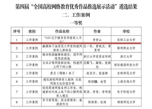 近日,由教育部思想政治工作司、中央网信办网络社会工作局联合主办的第四届“全国大学生网络文化节”和“全国高校网络教育优秀作品推选展示活动”遴选结果公布,我校建筑与土木工程学院党总支副书记、副院长李青山老师撰写的工作案例《123辽宁辅导员网络育人平台》成功入选并以全国第一名的成绩斩获一等奖,实现了我省在该项活动中的新突破。