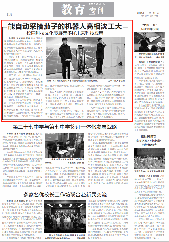 【辽沈晚报】能自动采摘茄子的机器人亮相沈工大——校园科技文化节展示多样未来科技应用