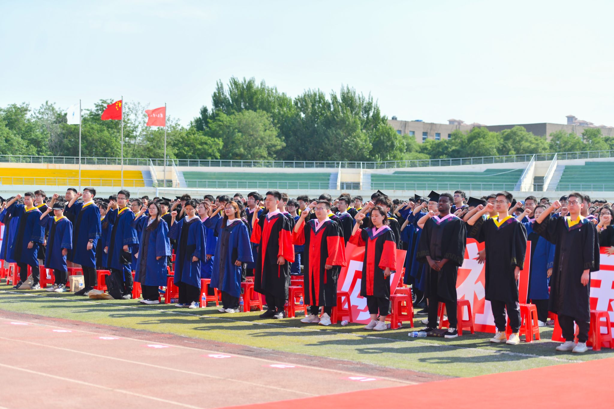 最后,全体毕业生庄严宣誓,表达了奋发作为、追求卓越,为中国式现代化挺膺担当的坚定决心。