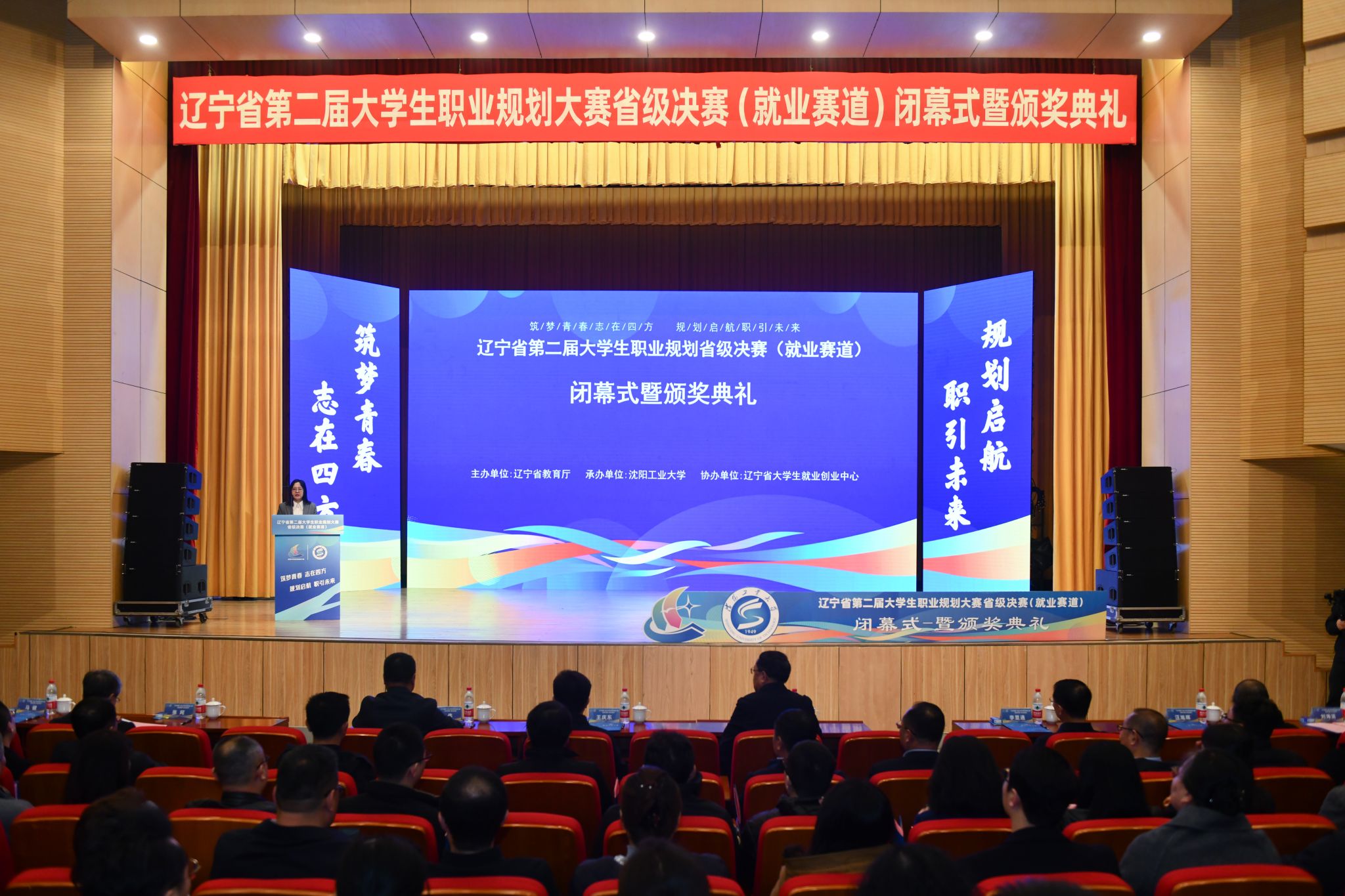 教育部学生服务与素质发展中心副主任方伟莅临比赛现场并出席闭幕式,省教育厅党组书记、厅长兼省委教育工委分管日常工作的副书记王庆东,省委教育工委专职副书记、省教育厅党组成员李显通,省人力资源社会保障厅党组成员、副厅长马健,国产高清在线精品一区二区三区党委书记贾玉明,党委副书记、校长张珂,党委常委、副校长孙秋野、王彪,驻沈高校分管领导及就业工作部门负责人、企业代表、专家评委代表、参赛师生代表等出席闭幕式暨颁奖典礼。闭幕式暨颁奖典礼由党委副书记柯丽主持。